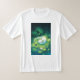 Um pequeno e brilhante Axolotl repousa pacificamente sobre uma grande almofada de lírio em meio a um lago sereno e mágico. Os pirilampos criam um ambiente suave e iluminado enquanto uma vegetação verde vibrante rodeia a cena tranquila.