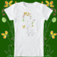 Flores doces simples e um pássaro alegre foram desenhados com aquarelas e tinta. Esta é uma camiseta infantil que te fará sorrir.