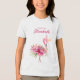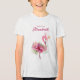 Um flamingo rosa, fofo, com coroa e flores em fundo branco