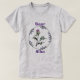 Um T bonito, feminino para suportes escoceses da independência. O design é uma ilustração de um cardo, a flor nacional de Scotland, dentro de um esboço de um anel de bluebells escoceses. O slogan é a frase gaélica escocesa Saor alba, Scotland livre, na rotulação roxa robusta. Você pode mudar a cor do texto com o botão da personalização.