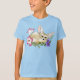Raposa de fenn giro enrolada com flores num pano de fundo azul