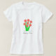 Linda camiseta com flores de coração da moda primavera em vermelho coral. Ideal para todos! Que o amor universal floresça! O texto pode ser personalizado.