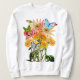Um buquê misto de flores silvestres laranja, amarelas e cor-de-coral atrai três borboletas coloridas neste Sweatshirt. Perfeito para quem ama a natureza!