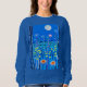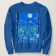 Camisola numa cena de fantasia de flores silvestres, sob a lua de cheio, em azul-noite e turquesa