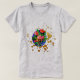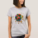 Camiseta Flores Vermelhas, Folhas Verdes e Fundo do Ouro