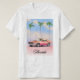 Poster de viagens Pink Sunset da Flórida com um carro muscular retrô-americano contra um pôr do sol da noite.
