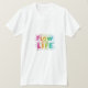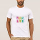 Esta t-shirt apresenta a mensagem "Flow with Life" num design de multicores vibrante. Cada letra se rompe com uma cor diferente, criando um sentido de movimento e energia. É perfeito para aqueles que abraçam uma visão positiva e colorida da vida!