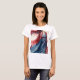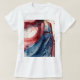 A mulher retratada na camiseta é elegante, sua figura cuidadosamente delineada para destacar a graça e o movimento. Sua saia fluente cai para baixo de forma fluida e sem esforço, criando uma impressão de movimento e dinamismo. A design capta a essência da elegância e feminilidade, retratando o sentido de beleza em movimento pelas linhas fluidas da saia.