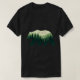 Bear silhouette filled with layered pine forest gradients and birds in flight; a wilderness mood in gradient greens, ideal for outdoor apparel and eco-conscious style.