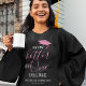 Uma camiseta de formatura feminina moderna, com a citação engraçada "Agora mais quente em um grau" (o número de graus pode ser personalizado) e um boné cor-de-rosa. Simplesmente personalize o modelo, adicionando nome e ano de classe.
