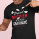 Comportando-se com orgulho do sucesso das conquistas de sua irmã ou irmãos! Então mostre a eles o quanto você está orgulhoso com essas t-shirts de comemoração negra com bonés em cartaz, o texto "irmão orgulhoso de um formando de 2025", o nome do formando e a cor vermelha para representar suas cores escolares ou universitárias.