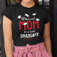 Comportando-se com orgulho do sucesso das conquistas de seus filhos! Mostre-lhes o quão orgulhoso você está com essas t-shirts de comemoração negra com bonés em cartaz, o texto "orgulhosa mãe de um formando de 2025", o nome do formando e a cor vermelha para representar suas cores escolares ou universitárias.