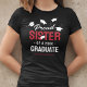 Comportando-se com orgulho do sucesso das conquistas de seu irmão ou irmãs! Então mostre a eles o quanto você está orgulhoso com essas t-shirts de comemoração negra com bonés de papo, o texto "irmã orgulhosa de um formando de 2025", o nome do formando e a cor vermelha para representar suas cores escolares ou universitárias.