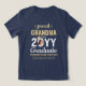 Mostre a sua alegria pelo formando com uma na moda personalizada camisa de graduação feminina "Vovó Orgulhosa". A imagem e o texto neste modelo são simples de personalizar, e todos os textos, cores e fontes podem ser alterados com a ferramenta Zazzle design. Ele pode ser personalizado para qualquer membro da família ou amigo, como pai, irmã, mãe, tia, primo, etc. (DICA DE IMAGEM: Uma maneira fácil de posicionar uma foto exatamente como você quer é recortá-la antes de ser carregada no site do Zazzle.) O design de ouro e azul-marinho de inclui a foto do formando, o nome, o ano de aula, a escola e o espaço adicional opcional para uma citação inspiracional, ditado motivacional ou outro texto. Ele também apresenta elegantes scripts modernos de tipografia e na moda caligrafia. Observe que o ouro é impresso a cor, não a folha metálica. Esta camiseta faz uma legal ideia para uma cerimônia ou festa de formatura de início. Parabéns ao formando!