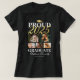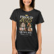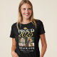 Camiseta preta e dourada da cerimônia de graduação com um quadro de formandos, 5 fotos para você substituir por seu próprio, o ditado "formando orgulhoso de 2025", seu nome e local de estudo.