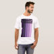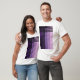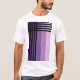 Aqui está uma design moderna para a camiseta branca dos seus homens. Consiste em 5 tiras pastéis sorteadas em tons de roxo, cortadas com 5 listras pretas horizontais e verticais intersetando no canto superior esquerdo. Um nome personalizável impresso em uma fonte moderna pontilhada branca é colocado verticalmente em uma das faixas roxas. Substitua o nome padrão pelo seu ou sinta-se livre para excluí-lo.