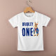 Peter Cobit Winter temed festa de aniversário personalizada t-shirt, um coelhinho fofo numa jaqueta azul e uma festa de aniversário vermelha do cachecol, protetor fotográfico