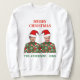 Personalizar e personalizar este suéter de Natal feio com duas pessoas, ambas vestindo o mesmo suéter de Natal Feio e o chapéu de Santas. Suéter verde com um padrão festivo de férias com Enfeites de natal vermelhos, chapéu de santa claus, ameixas de açúcar, flocos de neve e meias de Natal. Carregue uma foto recortada, sem fundo ou em fundo branco (as fotos no estilo do passaporte funcionam melhor) Personalize áreas de texto e personalize com o nome da família e o ano. Designs originais por todos os direitos reservados de Suki.