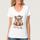 Quando a raposa diz "Feliz Natal" Uma raposa alegre vestindo um chapéu de Papai Noel e suéter vermelho, cercada por árvores de Natal.