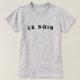 A camiseta francesa Ce Soir é boa design. Trendy french words/frase "Ce Soir" impressão. Ideal para o namorada, a mãe do véu, para o dia de as mães, dia de os namorados ou qualquer outro dia do ano. Outros tamanhos, estilos e cores disponíveis para este impressão personalizável. Qual é o significado de ce soir? Ce soir significa "esta noite" ou "esta noite" em francês. Estilo: Camiseta Básica das Mulheres Esta camiseta básica apresenta um ajustado relaxado para a forma feminina. Feita a partir de 100% de algodão, esta t-shirt é durável e suave - uma combinação de excelentes, se procurares aquele grampeador casual de roupa. Selecione um design do nosso mercado ou personalize-o e liberte a sua criatividade! O modelo de tamanho e Ajustado é de 5’7" e está vestindo um pequeno Ajustado padrão de ajustado verdadeiro para Tecido e cuidado 100% de algodão capas sobrecarregadas de agulha dupla e inferior