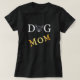 Um chá gráfico divertido para Mães de cães que adoram buldogues franceses. O texto branco DOG com uma foto de um francês substituindo o O e o MOM abaixo em uma fonte de ouro brilhante.