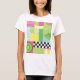 Uma camiseta para o verão com rosa, verde, amarelo, azul e azul claro