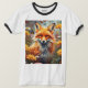 Ein hübscher kleiner Fuchs schaut dich an. Er sitzt zwischen Blumen und spielte mit Schmetterlingen.