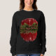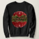 🎄☕This funny "Coffee Makes Me Merry!!" quote on this warm, black sweatshirt rests on a festive coffee bean and pinecone garland on a sparkly red background with glistening silver icicles.