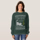 Dark green sweatshirt featuring a digitally illustrated pixel and knitted-style design of a sleepy cat stretching beside a Christmas tree. The festive print in white, red, and green brings cozy holiday vibes — perfect for ugly Christmas sweater for cat lovers who only wake up for tuna and Christmas!