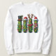 A cute, fun shirt for the holiday season! Christmas pickles in jars wrapped in Christmas lights and dressed in Santa , snowman and reindeer hats.