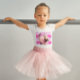 Uma furão bonito dona um tutu rosa e tenta a mão no balé dançante.
