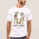 Aprecie seus convidados de casamento com esta divertida t-shirt de casamento com dinossauros e uma noiva de T-Rex e um dinossauro de noivos. Fácil de personalizar com os nomes da noiva e do noivo e a data do casamento. Diversão pré-histórica da noiva T-Rex e ilustrações nobres com tipografia moderna. Arte original única da artista Catherine Sweetman