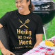 Na ópera "Anel dos Nibelungs" de Richard Wagner, "Die Walküre" ("Valkyrie"), o vilão bárbaro neandertal, Hunding, declara: "Sacrou o meu coração." Esta citação está definida aqui na tipografia germânica ouro que pop contra um fundo escuro. Perfeito para uma cara que ama ópera e grill!