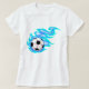Um campeonato de futebol num fundo azul. Esta design parece muito eficaz nesta Camiseta das Mulheres