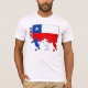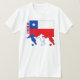 Três jogadores de futebol jogam em frente à bandeira chilena.Nome do país Chile está do lado