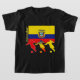 Jogo de três jogadores de futebol na frente da bandeira de Equador. O nome de país Equador está no lado