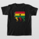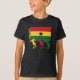 Jogo de três jogadores de futebol na frente da bandeira de Ghana. O nome de país Ghana está no lado