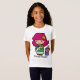 Menina florista bonita com cabelo magenta vendendo flores. Para o florista ou fazendeiro de flores. O texto é personalizável.