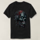 The image features a highly detailed cybernetic skull, combining organic and mechanical elements. The skull has glowing blue eyes, sharp teeth, and a structure that mixes human bones with technological components such as wires, gears, and circuits. The upper part of the skull reveals an exposed brain, also intertwined with electronic devices. There are inscriptions and symbols on the surface of the skull, adding a touch of mystery and complexity to the image. This cybernetic skull represents a fusion between human and machine, evoking themes of transhumanism and technological evolution.