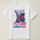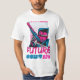 design de camiseta Legal com estilo retrowave apresentando uma ilustração de um ciborgue segurando uma arma com legenda "Future now".Use este design pronto para impressão para camisetas, posters, caneca, capuzes e outros produtos de mesclagem.
