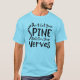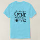 Legal ditado quiroprático para um quiroprático. Apresentando a tipografia negra moderna com o ditado "Não deixe sua espinha entrar em seus nervos". Você pode mudar facilmente a cor do texto e escolher qualquer cor da camisa ou transferir para qualquer produto clicando no botão "Personalizar"