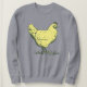 Blusa de mulher com desenho vintage de galinha. Desenho suave e silenciado de galinha amarela em perfil, penas delineadas com graça. Captura a essência da vida rural no campo.