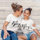 Simples, "gang de raparigas" na moda cita a camiseta feminina na tipografia moderna e minimalista da escrita em preto para celebrar mulheres e poder feminino! Perfeitamente versátil para o dia a dia, uma festa de solteira ou uma combinação fofa para mãe e filhas, irmãs e amigos!