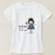 Uma bonitinha com cabelo e vestindo um vestido de denim azul, colar de pérolas, e tênis segurando um copo de vinho tinto com uma definição de vinho.