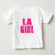 Design tipográfico de Garota de LA com folhas de palmeira. Camisa rosa de Los Angeles.