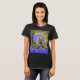 Em destaque está um desenho da "Garota Sonhadora" em padrões de giro azul-roxo claro e dourado que também incorpora a cor da t-shirt para um olhar elegante e artístico, com um pouco de rotação retrorreflectora, evocativo da ilustração tradicional do livro de histórias. Foto aqui em uma t-shirt preta com outros estilos e cores disponíveis. Inspirado no estilo de arte da pop e na ilustração impressão/livro antiquada, o design projeta uma qualidade artística gráfica para uma versátil e bela adição ao seu visto casual e cotidiano (seja em casa, socializando com amigos, jogando esportes ou correndo sobre a cidade). A design de camisa como "arte 'vestível'" também expressa um sentido de seu estilo individualizado, contribuindo para o sentimento de ser "unido" e criativo em suas escolhas pessoais de guarda-roupa.