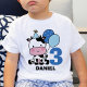 Torne a aniversário de 3 anos extra do seu filho especial com nossa adorável camiseta com uma vaca fofa e balões azuis. Adicione o nome e a idade do seu filho para tornar a camisa realmente especial!