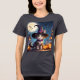 brilha com felicidade na noite de Halloween, seus olhos brilhando como luz estelar enquanto toca entre as abóboras e dança no brilho suave da lua