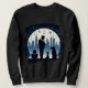 Capture a essência de uma paisagem urbana noturna em estilo minimalista com as silhuetas de um gato e de um cachorro ao lado de um músico de jazz. Esta design é perfeita para amantes da música, entusiastas dos animais e aficionados pela arte.