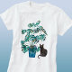 Pintura aquosa moderna de um gato preto sentado numa fábrica de Monstera Deliciosa ou de queijo suíço num pote azul turquesa. Arte original de Nic Squirrell. Excelente para amantes de gatos e plantas domésticas.